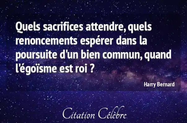 Quels sacrifices attendre, quels renoncements espérer dans la poursuite d'un bien commun, quand l'égoïsme est roi ?