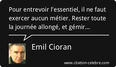 Pour entrevoir l'essentiel, il ne faut exercer aucun métier. Rester toute la journée allongé, et gémir...