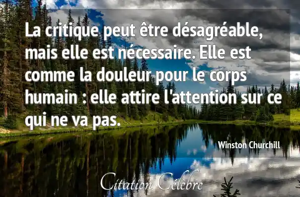 La critique peut être désagréable, mais elle est nécessaire. Elle est comme la douleur pour le corps humain : elle attire l'attention sur ce qui ne va pas.
