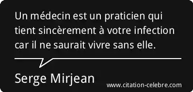 Un médecin est un praticien qui tient sincèrement à votre infection car il ne saurait vivre sans elle.