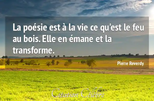 La poésie est à la vie ce qu'est le feu au bois. Elle en émane et la transforme.