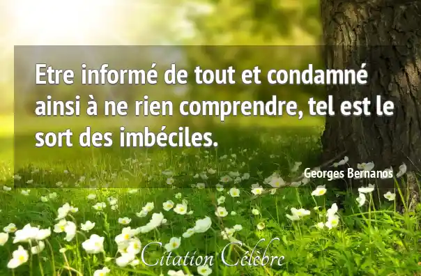 Etre informé de tout et condamné ainsi à ne rien comprendre, tel est le sort des imbéciles.