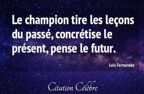 Le champion tire les leçons du passé, concrétise le présent, pense le futur.
