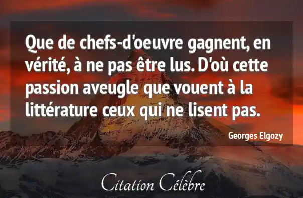 Que de chefs-d'oeuvre gagnent, en vérité, à ne pas être lus. D'où cette passion aveugle que vouent à la littérature ceux qui ne lisent pas.