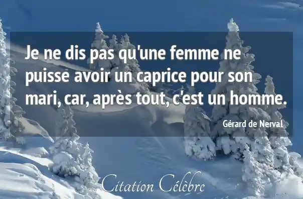 Je ne dis pas qu'une femme ne puisse avoir un caprice pour son mari, car, après tout, c'est un homme.