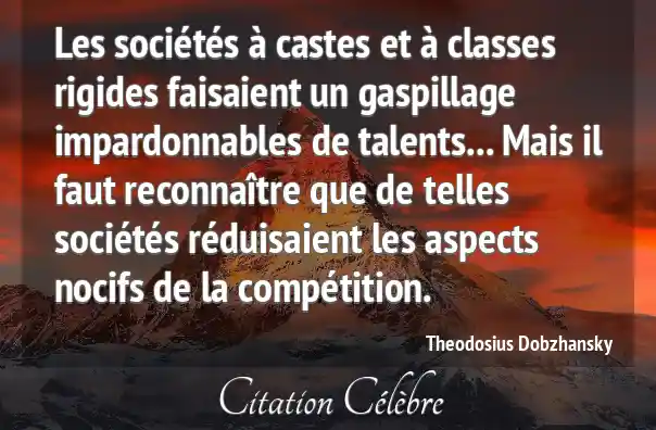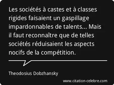 Les sociétés à castes et à classes rigides faisaient un gaspillage impardonnables de talents... Mais il faut reconnaître que de telles sociétés réduisaient les aspects nocifs de la compétition.