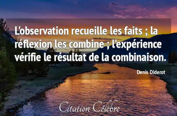 L'observation recueille les faits ; la réflexion les combine ; l'expérience vérifie le résultat de la combinaison.