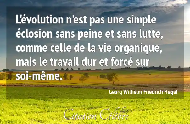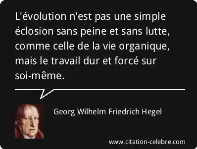 L'évolution n'est pas une simple éclosion sans peine et sans lutte, comme celle de la vie organique, mais le travail dur et forcé sur soi-même.