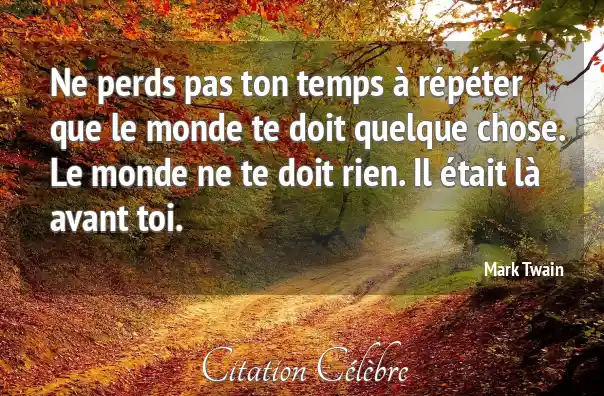 Ne perds pas ton temps à répéter que le monde te doit quelque chose. Le monde ne te doit rien. Il était là avant toi.
