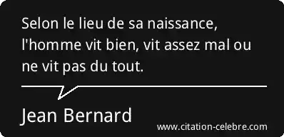 Selon le lieu de sa naissance, l'homme vit bien, vit assez mal ou ne vit pas du tout.