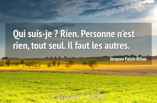 Qui suis-je ? Rien. Personne n'est rien, tout seul. Il faut les autres.