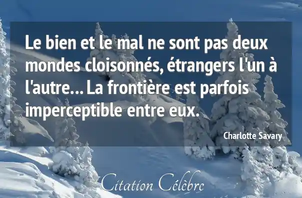 Le bien et le mal ne sont pas deux mondes cloisonnés, étrangers l'un à l'autre... La frontière est parfois imperceptible entre eux.