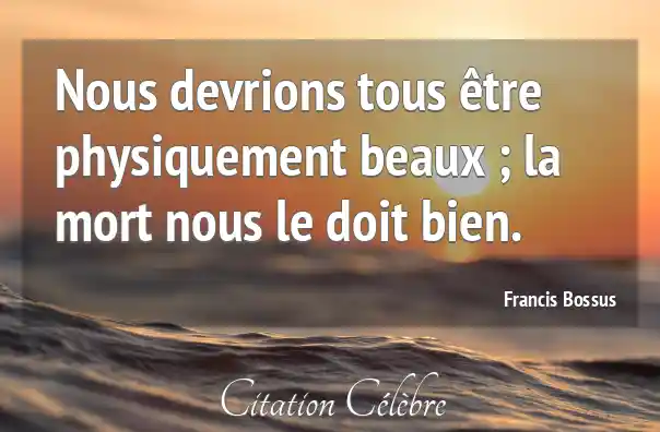 Nous devrions tous être physiquement beaux ; la mort nous le doit bien.