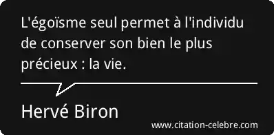 L'égoïsme seul permet à l'individu de conserver son bien le plus précieux : la vie.