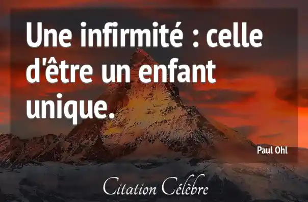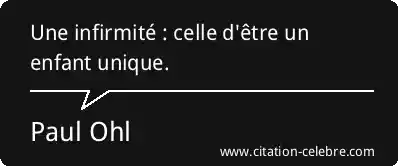 Une infirmité : celle d'être un enfant unique.