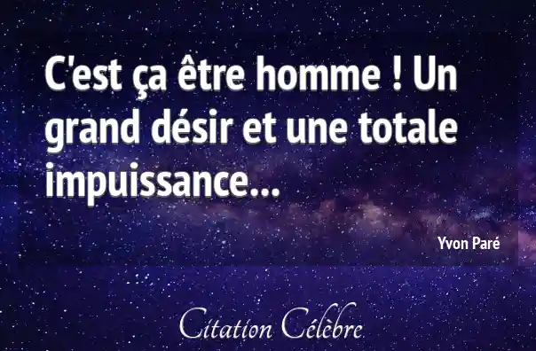 C'est ça être homme ! Un grand désir et une totale impuissance...
