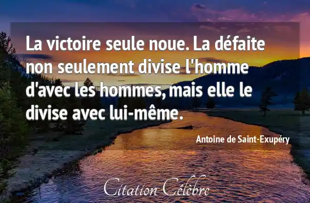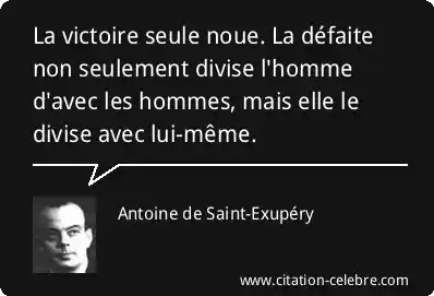 La victoire seule noue. La défaite non seulement divise l'homme d'avec les hommes, mais elle le divise avec lui-même.