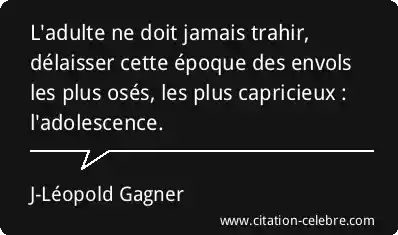 L'adulte ne doit jamais trahir, délaisser cette époque des envols les plus osés, les plus capricieux : l'adolescence.