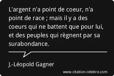 L'argent n'a point de coeur, n'a point de race ; mais il y a des coeurs qui ne battent que pour lui, et des peuples qui règnent par sa surabondance.