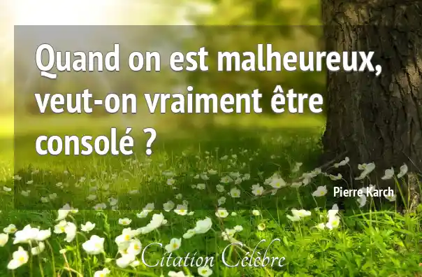 Quand on est malheureux, veut-on vraiment être consolé ?