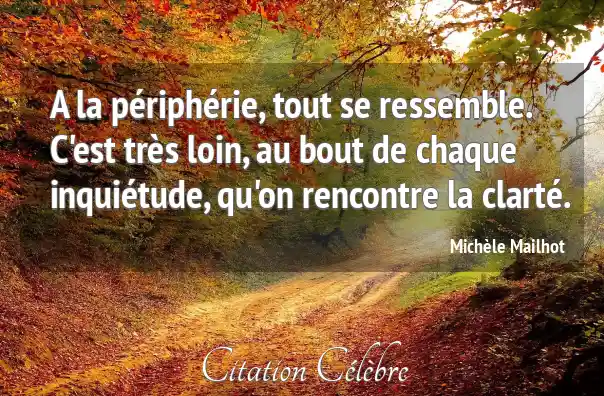 A la périphérie, tout se ressemble. C'est très loin, au bout de chaque inquiétude, qu'on rencontre la clarté.