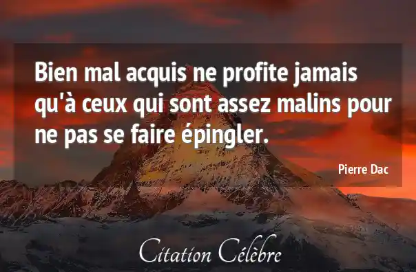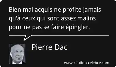 Bien mal acquis ne profite jamais qu'à ceux qui sont assez malins pour ne pas se faire épingler.