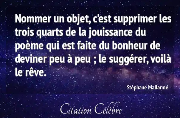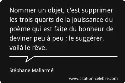 Nommer un objet, c'est supprimer les trois quarts de la jouissance du poème qui est faite du bonheur de deviner peu à peu ; le suggérer, voilà le rêve.