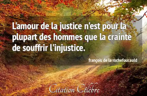 L'amour de la justice n'est pour la plupart des hommes que la crainte de souffrir l'injustice.