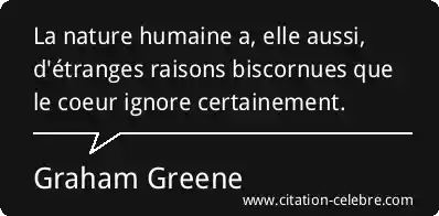 La nature humaine a, elle aussi, d'étranges raisons biscornues que le coeur ignore certainement.