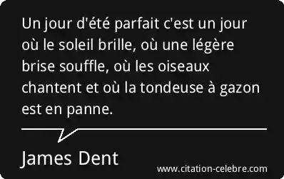 Un jour d'été parfait c'est un jour où le soleil brille, où une légère brise souffle, où les oiseaux chantent et où la tondeuse à gazon est en panne.