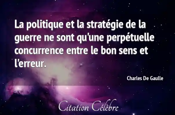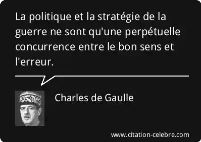 Citation Charles de Gaulle guerre : La politique et la stratégie de la guerre ne sont...