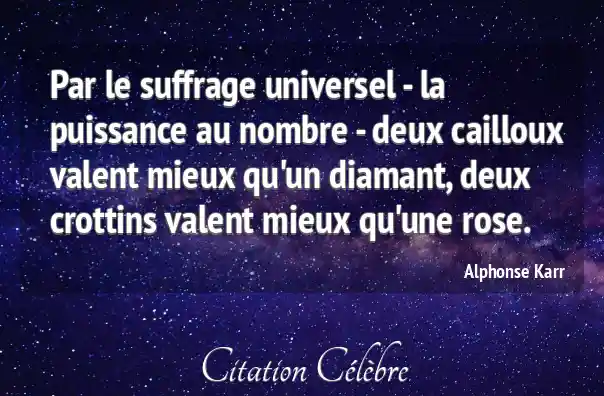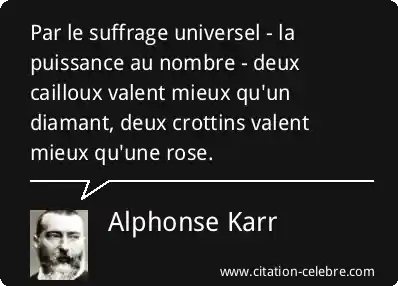 Par le suffrage universel - la puissance au nombre - deux cailloux valent mieux qu'un diamant, deux crottins valent mieux qu'une rose.