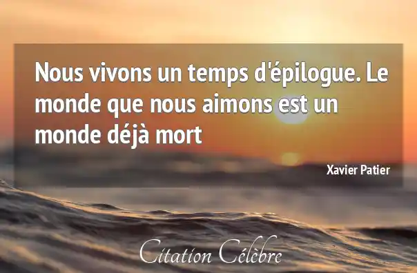 Nous vivons un temps d'épilogue. Le monde que nous aimons est un monde déjà mort