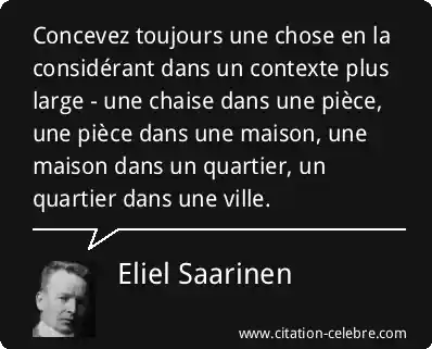 Citation d'Eliel Saarinen sur Chose, Maison et Ville