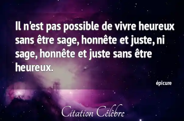Il n'est pas possible de vivre heureux sans être sage, honnête et juste, ni sage, honnête et juste sans être heureux.