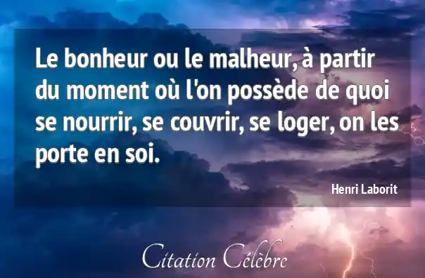 Le bonheur ou le malheur, à partir du moment où l'on possède de quoi se nourrir, se couvrir, se loger, on les porte en soi.