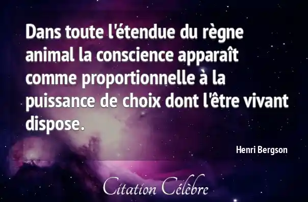 Dans toute l'étendue du règne animal la conscience apparaît comme proportionnelle à la puissance de choix dont l'être vivant dispose.
