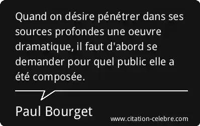 Quand on désire pénétrer dans ses sources profondes une oeuvre dramatique, il faut d'abord se demander pour quel public elle a été composée.