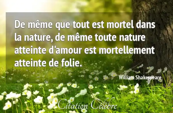 De même que tout est mortel dans la nature, de même toute nature atteinte d'amour est mortellement atteinte de folie.