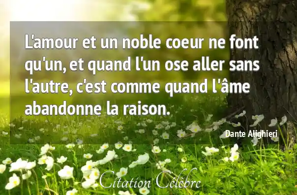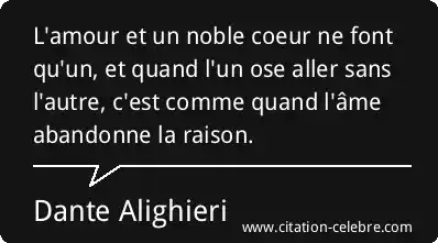 L'amour et un noble coeur ne font qu'un, et quand l'un ose aller sans l'autre, c'est comme quand l'âme abandonne la raison.