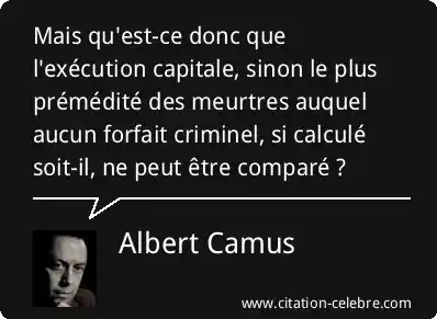 Mais qu'est-ce donc que l'exécution capitale, sinon le plus prémédité des meurtres auquel aucun forfait criminel, si calculé soit-il, ne peut être comparé ?