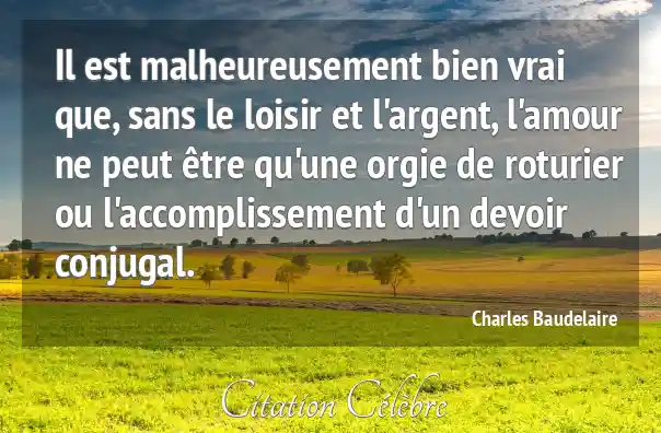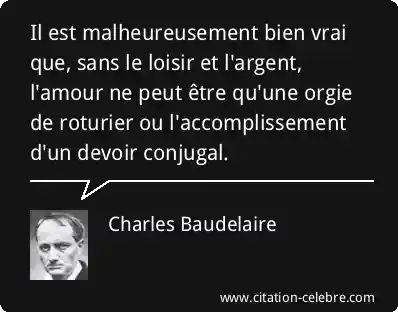 Il est malheureusement bien vrai que, sans le loisir et l'argent, l'amour ne peut être qu'une orgie de roturier ou l'accomplissement d'un devoir conjugal.