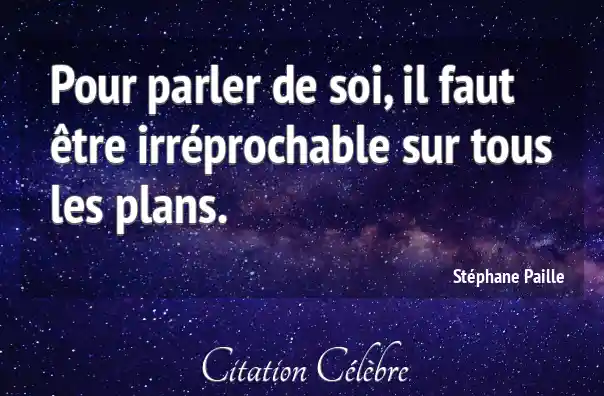 Pour parler de soi, il faut être irréprochable sur tous les plans.