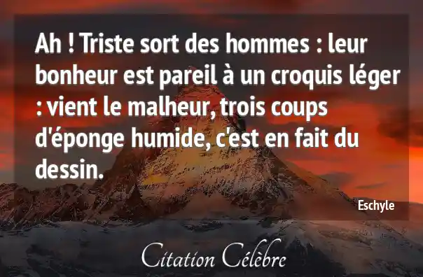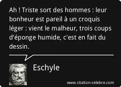 Ah ! Triste sort des hommes : leur bonheur est pareil à un croquis léger : vient le malheur, trois coups d'éponge humide, c'est en fait du dessin.
