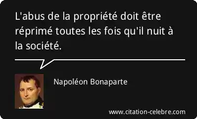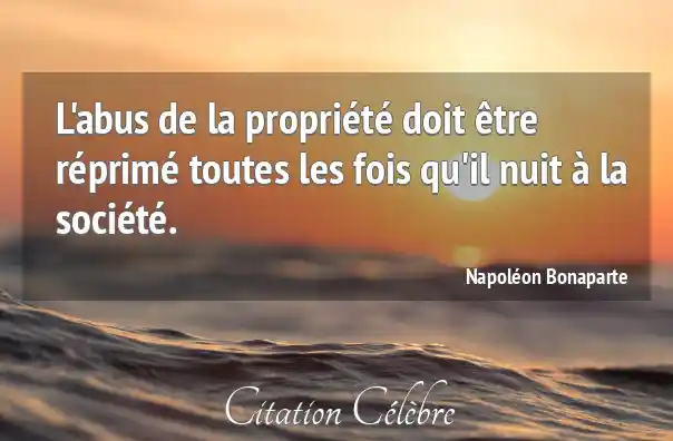 Citation Napoléon Bonaparte nuit : L'abus de la propriété doit être réprimé toutes les fois...