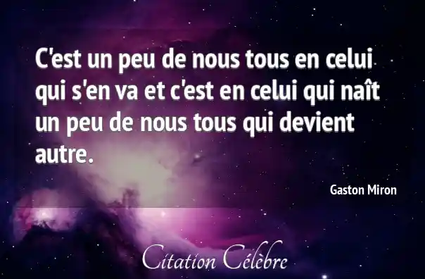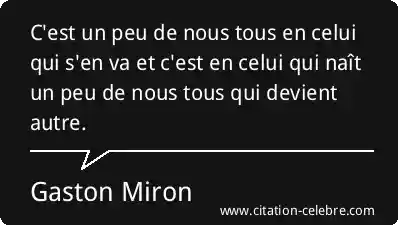 C'est un peu de nous tous en celui qui s'en va et c'est en celui qui naît un peu de nous tous qui devient autre.