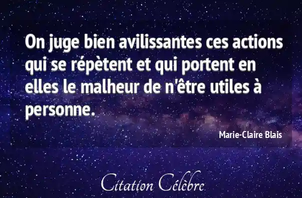 On juge bien avilissantes ces actions qui se répètent et qui portent en elles le malheur de n'être utiles à personne.