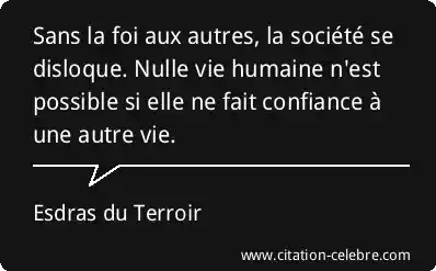 Sans la foi aux autres, la société se disloque. Nulle vie humaine n'est possible si elle ne fait confiance à une autre vie.