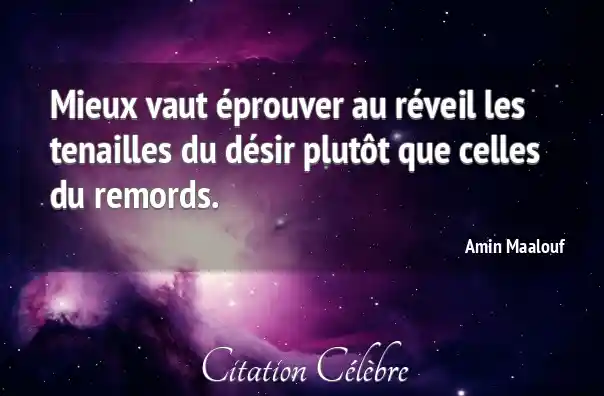 Mieux vaut éprouver au réveil les tenailles du désir plutôt que celles du remords.