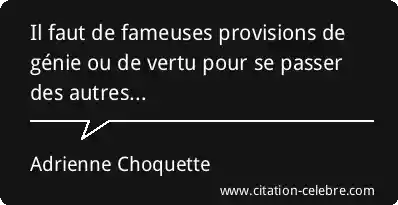 Il faut de fameuses provisions de génie ou de vertu pour se passer des autres...